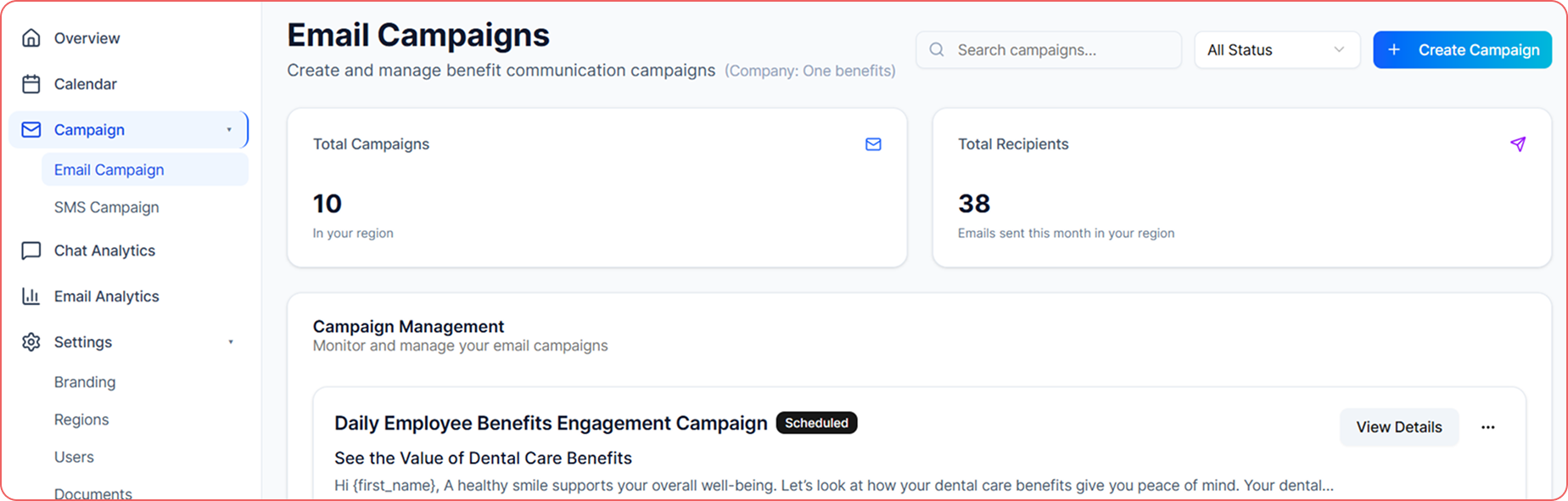 OneBenefits transforms employee benefits communication with automation, personalization, and measurable insights. Explore AI-driven campaigns, smart nudges, and compliance-ready dashboards, all designed to simplify engagement and amplify ROI.
